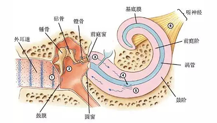 <span style="font-size:16px;"> 人體各器官功能取決于其生理結構,高頻陡降性聽力損失最為常見主要與耳部各個解剖部位有關。</span></p><p><span style="font-size:16px;"> 1、外耳的漏斗狀結構和彎曲“S”型耳道,此結構使得外界的聲學物理發生了變化。</span></p><p style="text-align: center;"><span style="font-size:16px;"><img src="/upfiles/201809030156391756.jpg" alt="" /><br /></span></p><p><span style="font-size:16px;"> 如上圖所示,人類耳廓及耳道對不同頻率段的聲音增益變化可以看出:在頻率2kHz-4kHz范圍耳道對聲音增益最大。研究表明噪聲引起的聽力損失常常位于噪聲頻率之上的一倍頻率程處,工業噪聲位于低中頻范圍內相對恒定,外耳道自然共振峰為2kHz-4kHz,故最容易導致4kHz-6kHz頻率范圍內聽力損失。這也就是為什么噪聲性耳聾起初聽力損失常常從4KHz左右開始,逐漸損害影響至更好頻率。</span></p><p><span style="font-size:16px;"> 2、耳蝸螺旋狀結構</span></p><center><span style="font-size:16px;"><img alt="" src="/upfiles/201809030156464845.jpg" width="440" height="250" /></span></center><p></p><p><span style="font-size:16px;"> 聲音從外耳道經聽骨鏈傳至內耳前庭窗,懸浮在耳蝸內的基底膜剪切運動引起其上的毛細胞電位變化,傳至大腦皮層感受聲音。</span></p><p><span style="font-size:16px;"> 耳蝸結構類似蝸牛呈螺旋結構,約2.5圈-2.75圈。聲波在基底膜上的傳播方式,是按物理學中的行波原理進行的,亦即行波學說(travellingwavetheory)。基底膜的最大振幅部位與聲波的頻率有關,亦即每一種頻率的聲波在基底膜上不同位置有一相應的最大振幅部位:高頻聲引起的最大振幅部位在蝸底靠近前庭窗處,低頻最大振幅靠近蝸頂,中頻在中間部分發生共振。由此可知,聲音從高頻到低頻的傳播途徑均需底周基底膜的振動,即高頻段的基底膜相對容易疲勞。同時耳蝸底周基底膜毛細胞含有比頂端毛細胞更低的抗氧化酶,故氨基糖苷類抗生素(慶大霉素、卡那霉素、鏈霉素等)耳毒性藥物出現的聽力損失都為陡降型聽力曲線。</span></p><p><span style="font-size:16px;"> 3、聽神經音頻分布</span></p><center><span style="font-size:16px;"><img alt="" src="/upfiles/201809030156516291.jpg" width="440" height="250" /></span></center><p></p><p><span style="font-size:16px;"> 聽神經分布與耳蝸基底膜螺旋結構一脈相承,感受低頻的神經位于中心,感受高頻的聽神經位于外周。外傷、缺血缺氧、皰疹病毒等理化環境的變化首先影響到高頻。</span></p><p><span style="font-size:16px;"> 更多詳情請登錄www.china-wuhuan.com。</span></p>" />