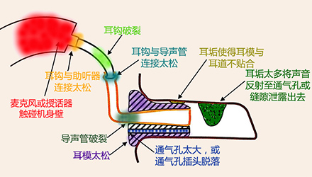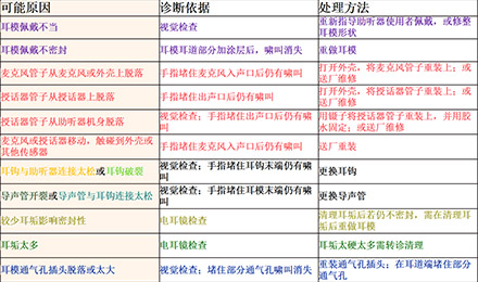 <span style="font-size:16px;"> 嘯叫,一直是引起助聽器使用者不滿的一大原因,也是驗(yàn)配師在助聽器調(diào)試時(shí)最為棘手的難題之一。</span></p><p><span style="font-size:16px;"> 通常,嘯叫分內(nèi)部嘯叫和外部嘯叫。內(nèi)部嘯叫常由內(nèi)部零件故障引起,而外部嘯叫則是與助聽器外殼或耳模,助聽器調(diào)試等有關(guān)。</span></p><p style="text-align: center;"><span style="font-size:16px;"><img src="/upfiles/201810100140556872.jpg" alt="" /><br /></span></p><p><span style="font-size:16px;"> 我們常常說的外部嘯叫是在聲音被麥克風(fēng)拾取、放大器放大、授話器轉(zhuǎn)換后,又從各種縫隙(如外殼與耳道的縫隙、通氣孔)中“跑”出來,又“跑”進(jìn)去,如此反復(fù)多次,使得聲音越來越大,產(chǎn)生“吱吱吱”的惱人嘯叫。</span></p><p><span style="font-size:16px;"> 以助聽器的角度來看,shou話器把聲音授給耳朵聽,當(dāng)用“授”,即授話器。</span></p><p><span style="font-size:16px;"> 接下來將分別針對定制式(ITE/ITC/CIC)和耳背式(BTE)助聽器的嘯叫問題,跟著產(chǎn)生嘯叫的路徑,一一“攻破”嘯叫難題。注意,這里不說助聽器調(diào)試,只尋嘯叫路徑,并“堵死”嘯叫“通路”,讓進(jìn)入助聽器的聲音“不走回頭路”。</span></p><p><span style="font-size:16px;"> 1、ITE/ITC/CIC助聽器</span></p><p><span style="font-size:16px;"> 先來看看ITE/ITC/CIC助聽器可能發(fā)生嘯叫的路徑。</span></p><p><span style="font-size:16px;"> 圖1里是一個(gè)定制式助聽器佩戴于外耳道內(nèi)的示意圖,各種顏色的字和相應(yīng)顏色的標(biāo)記展示了發(fā)生嘯叫的各種情況。</span></p><center><span style="font-size:16px;"><img alt="" src="/upfiles/201810100142273990.png" width="440" height="250" /></span></center><p></p><p style="text-align: center;"><span style="font-size:16px;">圖1:ITE/ITC/CIC助聽器發(fā)生嘯叫的路徑一覽</span></p><p style="text-align: left;"><span style="font-size:16px;"> 例如,紅色表示“麥克風(fēng)管子脫落”,這屬于助聽器內(nèi)部零件脫落、故障,為內(nèi)部嘯叫。</span></p><p><span style="font-size:16px;"> 橙色表示“外殼佩戴太松”,這屬于外殼不密封的聲音泄露,為外部嘯叫。</span></p><p><span style="font-size:16px;"> 那如何檢查出是這些原因,并對問題進(jìn)行相應(yīng)處理呢?請對照表1中的“診斷依據(jù)”和“處理方法”查看。</span></p><center><span style="font-size:16px;"><img alt="" src="/upfiles/201810100142337254.png" width="520" height="250" /></span></center><p></p><p style="text-align: center;"><span style="font-size:16px;">表1:ITE/ITC/CIC助聽器產(chǎn)生嘯叫的可能原因及對應(yīng)的診斷依據(jù)、處理方法</span></p><p><span style="font-size:16px;"> 例如,當(dāng)發(fā)現(xiàn)“手指堵住麥克風(fēng)入聲口后仍有嘯叫”,可推斷原因是“麥克風(fēng)管子從麥克風(fēng)或外殼上脫落”或“麥克風(fēng)或授話器移動(dòng),觸碰到外殼或其他傳感器”,這時(shí)的處理方法是“送廠維修”。</span></p><p><span style="font-size:16px;"> 2、BTE助聽器</span></p><p><span style="font-size:16px;"> 學(xué)會了看ITE/ITC/CIC助聽器的一圖一表,再來看看BTE助聽器的嘯叫路徑圖(圖2),以及表2中羅列的可能原因、診斷依據(jù)和處理方法,相信看起來更加輕松、直觀、一目了然。</span></p><center><span style="font-size:16px;"><img alt="" src="/upfiles/201810100142383483.png" width="440" height="250" /></span></center><p></p><p style="text-align: center;"><span style="font-size:16px;">圖2:BTE助聽器發(fā)生嘯叫的路徑一覽</span></p><center><span style="font-size:16px;"><img alt="" src="/upfiles/201810100142449945.png" width="462" height="273" /></span></center><p></p><p style="text-align: center;"><span style="font-size:16px;">表2:BTE助聽器產(chǎn)生嘯叫的可能原因及對應(yīng)的診斷依據(jù)、處理方法</span></p><p><span style="font-size:16px;"> 更多詳情請登錄www.china-wuhuan.com。</span></p>" />