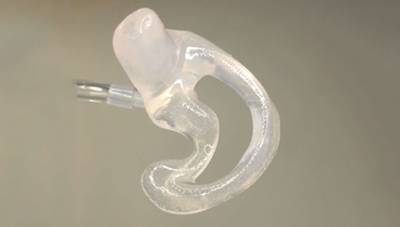 <span style="font-size:16px;"> 助聽器行業運用3D打印技術制作定制機外殼已經有10年時間了,通過3D掃描及電子化的訂單處理方式徹底革新了定制機的生產流程和技術,樹立了定制服務的新標桿。</span></p><p><span style="font-size:16px;"> 得益于這些新技術的運用,助聽器用戶體驗到了全新的定制服務:定制的周期大大縮短了;并且用戶的耳樣可以終身保存;老用戶升級制作也可以原樣復制;3D打印的外殼更加精確匹配每個用戶的耳道。</span></p><p><span style="font-size:16px;"> 然而,由于尚沒有可以用于3D打印的軟性材料,軟耳模的制作一直采用傳統的手工澆鑄工藝,電子化流程的優勢沒法體現在軟耳模的定制服務上。現在通過工程師們不懈努力,終于實現了軟耳模的“3D打印”。</span></p><p><span style="font-size:16px;"> 制作流程</span></p><p><span style="font-size:16px;"> 新流程相當巧妙,耳模設計師先通過3D設計軟件打印一個很薄的空殼,然后,在空殼內注入軟性耳模材料,待其固化后敲碎外層空殼即可。</span></p><p><span style="font-size:16px;"> 下圖為3D軟件設計的空殼。</span></p><center><span style="font-size:16px;"><img alt="" src="/upfiles/201810120144484505.png" width="440" height="250" /></span></center><p></p><p><span style="font-size:16px;"> 下圖左為檢查3D打印的空殼,下圖右為向空殼內注入軟性耳模材料。</span></p><center><span style="font-size:16px;"><img alt="" src="/upfiles/20181012014453120.png" width="440" height="250" /></span></center><p></p><p><br /></p><center><span style="font-size:16px;"><img alt="" src="/upfiles/201810120144585369.png" width="440" height="250" /></span></center><p></p><p><span style="font-size:16px;"> 軟耳模采用電子化流程制作后,立刻就能獲得下列優勢:</span></p><p><span style="font-size:16px;"> 1即時傳輸訂單,縮短總訂購周期;</span></p><p><span style="font-size:16px;"> 2為用戶終身保存耳樣;</span></p><p><span style="font-size:16px;"> 3不再郵寄物理耳樣,省時省力;</span></p><p><span style="font-size:16px;"> 4更加精確貼合用戶的耳道;</span></p><p><span style="font-size:16px;"> 5耳模表面處理更光亮,舒適;</span></p><p><span style="font-size:16px;"> 6可制作形狀更為復雜的軟耳模。</span></p><p><center><span style="font-size:16px;"><img alt="" src="/upfiles/201810120145046872.png" width="440" height="250" /></span></center><center><span style="font-size:16px;"><br /></span></center></p><center><span style="font-size:16px;"><img alt="" src="/upfiles/201810120145099065.png" width="440" height="250" /></span></center><p></p><p><span style="font-size:16px;"> 隨著對聽力學了解的不斷加深,大家對助聽器配件的認識亦不斷提高,因而對配件制作工藝提出了不小的要求。</span></p><p><span style="font-size:16px;"> 隨著科學技術的發展,助聽器配件的制作工藝越來越能滿足用戶的要求。</span></p>" />