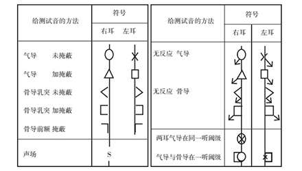 <span style="font-size:16px;"> 橫坐標(biāo)代表頻率,以倍頻程為單位分隔——請(qǐng)記住倍頻程的概念,它指兩個(gè)頻率間的間隔,高頻是相鄰低頻的兩倍;縱坐標(biāo)代表強(qiáng)度。右耳氣導(dǎo)用紅色“O”標(biāo)記,左耳用藍(lán)色“X”標(biāo)記,閾值就是頻率與強(qiáng)度的交叉點(diǎn)位置。比如某人左耳在250Hz處的聽閾是30dBHL,則在250Hz這一軸線上30dBHL中點(diǎn)劃一藍(lán)叉。30dBHL是聽閾,正常人的聽閾是-10dBHL~25dBHL,也就是說,這個(gè)人的聽力損失(也可稱做聽敏度下降)只有5dBHL。</span></p><center><img src="/upfiles/20181015013344992.png" alt="" /><br /></center><p></p><p style="text-align: center;"><span style="font-size:14px;">國家統(tǒng)一聽力標(biāo)記符號(hào)</span></p><p><span style="font-size:16px;"> 用聽力圖表示聽閾級(jí)時(shí),應(yīng)采用上表所給符號(hào),對(duì)氣導(dǎo)相鄰點(diǎn)用直線連接,骨導(dǎo)用虛線連接。如在聽力計(jì)最大輸出級(jí)仍無反應(yīng),可在相應(yīng)符號(hào)處垂直向下畫一箭頭,或在符號(hào)的下外角與垂直方約成45°角向下畫圖一箭頭(即左耳符號(hào)箭頭向右,右耳符號(hào)箭頭向左)。無反應(yīng)的符號(hào)記在聽力圖上代表聽力計(jì)最大輸出的聽力級(jí)處。如用彩色筆記錄,右耳符號(hào)和連線為紅色,左耳符號(hào)與連線為藍(lán)色。從篩選測聽法得出的結(jié)果應(yīng)清楚地照此表示出來。</span></p><p><span style="font-size:16px;"> 更多詳情請(qǐng)登錄www.china-wuhuan.com</span></p>" />