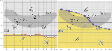 <span style="font-size:16px;"> 這些年來,助聽器技術(shù)和選配技能迅猛發(fā)展和提高,大都基于雙耳聽力損失相似的假設(shè)下的。當(dāng)遇到非對稱聽力損失的患者時(shí),驗(yàn)配師怎樣為患者更好的選配呢?</span></p><p><span style="font-size:16px;"> 一、雙耳聽覺</span></p><p><span style="font-size:16px;"> 聲音到達(dá)兩側(cè)耳所經(jīng)歷的路徑是不同的。信息的交叉與混合出現(xiàn)于相對低級別的聽覺系統(tǒng)。大腦利用雙耳間的時(shí)間差、強(qiáng)度差、頻率差和相位差來區(qū)別各種聲音。雖然聲音來自兩側(cè),但正常聽力的人們會感受到單一的整體聲音。</span></p><p><br /></p><center><span style="font-size:16px;"><img alt="" src="/upfiles/201811020220066880.png" width="440" height="250" /></span></center><p></p><p><span style="font-size:16px;"> 這種雙耳聽覺生理優(yōu)勢同樣出現(xiàn)于為雙側(cè)聽損患者進(jìn)行雙耳選配時(shí)。在助聽器選配過程中,試圖讓佩戴者重新獲取統(tǒng)一的感覺,即佩戴者應(yīng)該聽到雙側(cè)助聽器整合后的聲音。</span></p><p><span style="font-size:16px;"> 但遇到非對稱聽力損失時(shí)情況變得有點(diǎn)復(fù)雜,因?yàn)閮蓚?cè)裸耳聽閾相差很大。當(dāng)為非對稱聽力損失患者選配助聽器時(shí),尋求統(tǒng)一的聲音不再是驗(yàn)配師唯一要做到的事情,即使它也很重要。</span></p><p><span style="font-size:16px;"> 二、非對稱性感音神經(jīng)性聽力損失</span></p><p><span style="font-size:16px;"> 很多原因都能導(dǎo)致非對稱感音神經(jīng)性聽力損失的發(fā)生,如腮腺炎病毒、突聾、內(nèi)耳自身免疫性疾病、聽神經(jīng)瘤等。此外,有些非對稱聽力損失是由于噪聲暴露引起的。比如,有些獵人或軍人會存在單側(cè)噪聲性聽損。</span></p><p><span style="font-size:16px;"> 三、非對稱性聽力損失的幾種選配情形</span></p><p><span style="font-size:16px;"> (1)兩側(cè)耳均可選配,但往往一側(cè)耳效果更佳</span></p><p><span style="font-size:16px;"> 雙耳均適宜放大,但一側(cè)耳效果更好。如果單看每側(cè)耳都是可以選配的,但兩耳之間還是存在效果的差異。</span></p><p><span style="font-size:16px;"> (2)一側(cè)耳可選配,另一側(cè)耳存在“聽覺死區(qū)”</span></p><p><span style="font-size:16px;"> 一側(cè)為可選配耳,另一側(cè)耳蝸存在“死區(qū)”選配效果不佳。這些患者有可能為“死區(qū)”耳考慮人工耳蝸,但由于一些個(gè)人原因及手術(shù)風(fēng)險(xiǎn),并未最終都選擇人工耳蝸。助聽器仍是首選的彌補(bǔ)方案。一方面,由于聽力受損嚴(yán)重,聽力補(bǔ)償往往不能達(dá)到最適或適合級別;另一方面,因?yàn)榛颊咧荒芤蕾嚭枚穆犃Γ詴粗仳?yàn)配師的意見,驗(yàn)配滿意度會比較高。</span></p><p><span style="font-size:16px;"> (3)一側(cè)耳聽力正常,另一側(cè)耳可選配</span></p><p><span style="font-size:16px;"> 最復(fù)雜的一種情況是一側(cè)耳聽力正常,另一側(cè)耳可以選配助聽器。因?yàn)榛颊叱3谜B犃Χc助聽耳比較,所以在選配時(shí)需要考慮多方面的因素。聽力損失越重,選配就會越困難。然而,有些時(shí)候,患側(cè)佩戴助聽器不單因?yàn)橐哉Z交流,而可能是其他一些原因,譬如尋求安全感和定位感。</span></p><p><span style="font-size:16px;"> 四、非對稱性感音神經(jīng)性聽力損失的選配建議</span></p><p><span style="font-size:16px;"> (1)晚點(diǎn)再說不</span></p><p><span style="font-size:16px;"> 幾十年以前,曾經(jīng)流行過一些關(guān)于非對稱聽力損失雙耳選配效果不佳的說法。我們的建議是,如果驗(yàn)配師想確定患側(cè)耳是否適合選配助聽器,請給那側(cè)耳選配助聽器,給患者時(shí)間去適應(yīng),然后做出適合的調(diào)整,讓患者自述助聽器的獲益度。</span></p><p><span style="font-size:16px;"> 很多驗(yàn)配師擔(dān)心非對稱性聽力損失患者雙耳驗(yàn)配的獲益度不高,而放棄雙耳驗(yàn)配。我們的建議是嘗試看看接下來會發(fā)生什么。</span></p><p><br /></p><center><span style="font-size:16px;"><img alt="" src="/upfiles/201811020220133633.png" width="550" height="250" /></span></center><p></p><p><span style="font-size:16px;"> 有個(gè)不錯(cuò)的案例分享給大家。這位聽損患者的雙耳聽力圖呈現(xiàn)非對稱感音神經(jīng)性聽力損失,如上圖所示。右耳的裸耳言語識別率無法通過耳機(jī)測出。該患者左耳佩戴助聽器已有許多年,卻從未嘗試右耳佩戴助聽器。驗(yàn)配師為他的右耳選配了助聽器,并給予其足夠的時(shí)間來適應(yīng),后又進(jìn)行了一些調(diào)整。一段時(shí)間后,驗(yàn)配師分別測試了患者在安靜和噪聲環(huán)境下左耳與雙耳的詞語識別率,結(jié)果顯示雙耳佩戴比單耳佩戴在安靜環(huán)境下詞語識別得分從76%提高至92%,噪聲環(huán)境下從56%提高至88%(信噪比為+10 dB)。這個(gè)案例雖然表現(xiàn)為一側(cè)不可選配,但結(jié)果還是雙耳選配更佳。</span></p><p><span style="font-size:16px;"> (2)意在雙耳融合</span></p><p><span style="font-size:16px;"> 如果同樣一種聲音但兩側(cè)耳聽起來不同,很容易導(dǎo)致聲信息的判斷混淆,一般很少有人愿意雙耳佩戴。所以在為非對稱聽力損失進(jìn)行雙耳選配時(shí),必須力爭建立雙耳的平衡。至于提供多少增益、多少通道,具體情況需要具體分析。最終的目的是獲得雙耳融合的、整體的感覺。</span></p><p><span style="font