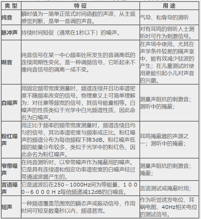 1. 描述聲波的常見物理量</p><p> 1)頻率:單位時間內物體振動的次數(次/秒),用Hz表示;</p><p> 2)強度和振幅:振幅是描述物體振動時傳遞能量的大小,單位是分貝dB;</p><p> 3)分貝:人耳的聽聲范圍太大,引起聽閾的最小聲強與引起痛覺的最小聲強相差近100萬倍,不易計數,因此以某一絕對聲強為基準(20μPa),將聲強的絕對值轉換為與該基準聲強的比值(聲強的級),再取以10為底的對數,最終計數單位變成了貝爾(Bell),為了更細的分級,現在普遍采用1/10B,即分貝(dB)為計數單位。</p><p> </p><center><img alt="" src="/upfiles/201906100126248309.png" width="423" height="154" /></center><p></p><p style="text-align: center;">音波示意圖</p><p style="text-align: left;"> 4)相位:指聲源相對于聽者的方向或位置,當頻率相同的聲音同時到達某點時,如果相位相同,其結果是使聲音顯得更響;當聲音一前一后分別到達時,相位出現部分抵消,其結果是使聲音顯得更輕,相位是確定聲源位置的依據;</p><p> 5)聲壓級(SPL):是用對數級的辦法來表示聲壓的相對大小,單位是dB SPL。計算公式為Lp(SPL)=20lg(P/P0),P0為基準聲壓,在空氣中取人耳1000Hz處能聽到的最小聲壓20μPa。</p><p> 2. 聽力學中常用的聲音信號</p><p> 下列聲信號在聽力測試、聲場測試、助聽器檢測等過程中經常被用到的。</p><p> </p><center><img alt="" src="/upfiles/201906100126317113.png" width="554" height="600" /></center><p></p><p> 更多詳情請登錄聽覺有道助聽器www.china-wuhuan.com</p>" />